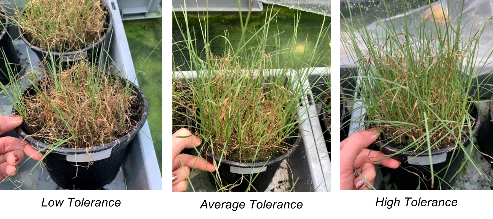 Tests were conducted over the two-year period, measuring the tolerance of more than 30 perennial ryegrass varieties – including nine 4turf® tetraploid perennial ryegrasses – inoculated with the Rhizoctonia isolate. In the 2021 experiment, the seeds were sown at the end of January and were cut twice a week up to the inoculation, which took place when the seedlings were six weeks old in early March. Each variety was then scored weekly for plant health over the course of the next four weeks.